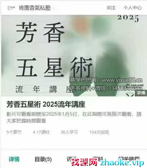 课程编号:Y2506159芳香五星術 2025流年講座 钉钉课堂 5节视频课
