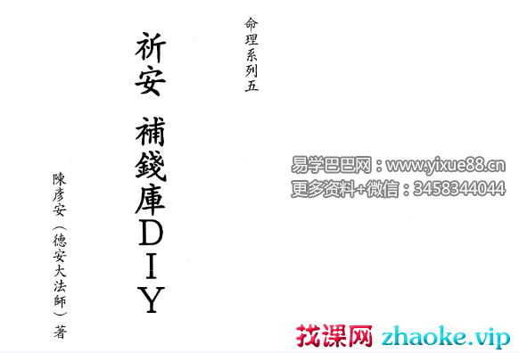 课程编号:Y2506164陈彦安(德安大师)《祈安 补钱库DIY》408页