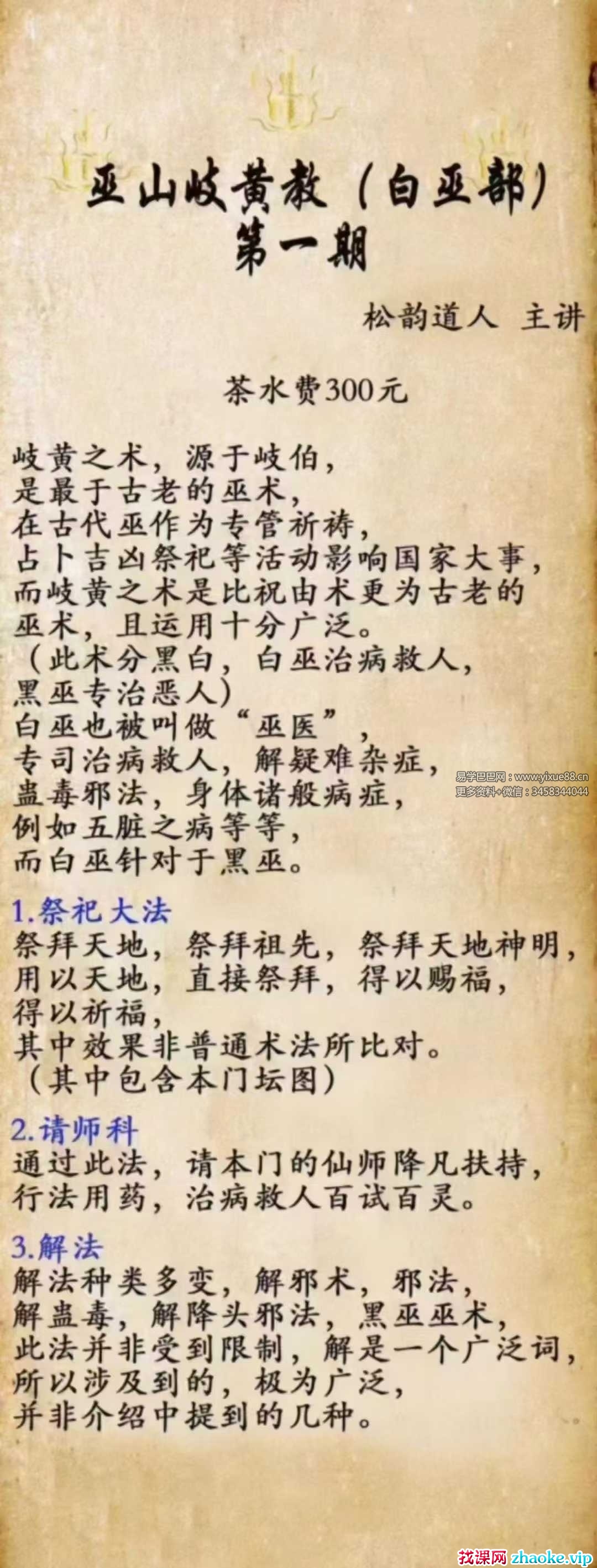 松韵道人主讲巫山岐黄教(白巫部)第一期