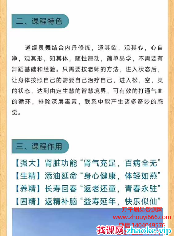 自古仙离不开舞、舞离不开道、而道离不开内丹! 在学习过程中,除了让大家深度体验内丹功法的神奇功效以外,玉清师父还将舞蹈与内丹结合,创造了一套既简单易学,又能修复身体回春的舞蹈——“道家仙舞”!