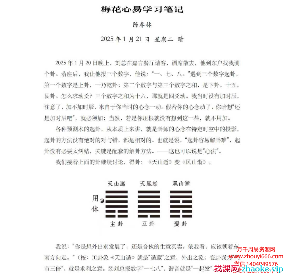 陈春林《2025版梅花易数心易学习笔记》PDF文档6册合集,附试卷、流年卦等