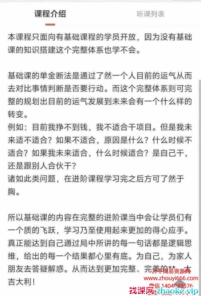师承沈阳宋师,该专栏课程为飞盘五元通圣占法完全体系,入局阶段。该体系也是本人面对众客户也正在使用的体系,所以不缺实战案例。学习完本课程之后可以对于自己目前到未来的运气走向,变动有一个十分清晰的认知,是基础课的大提升。