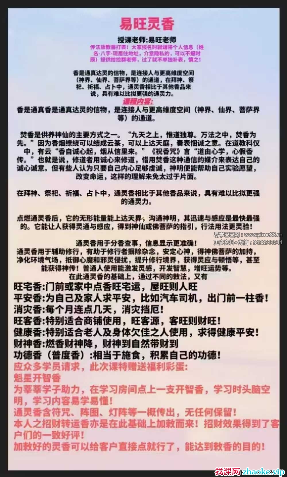 通灵香含符咒、阵图、灯阵等一概传出,无任何保留!