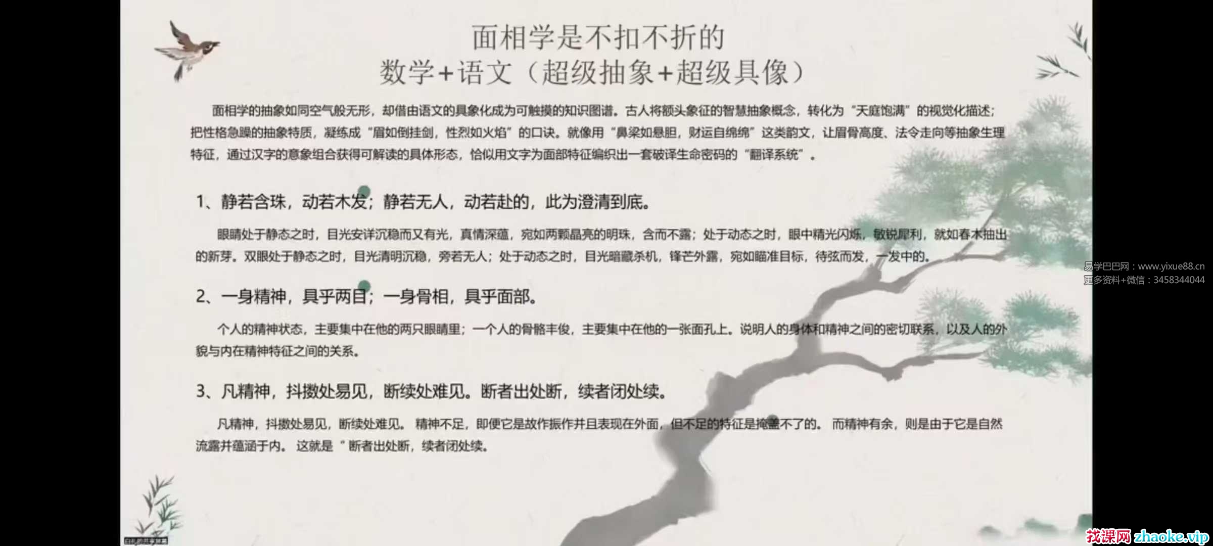 课程编号:Y2509114🇨🇳🇨🇳白礼老师《白礼说相-国学面相视频直播课》课程简介:本课程由资深传统文化研究者白礼老师主讲,其拥有 20 年面相学研究经验,擅长将传统相法与现代科学结合,曾在多所高校及