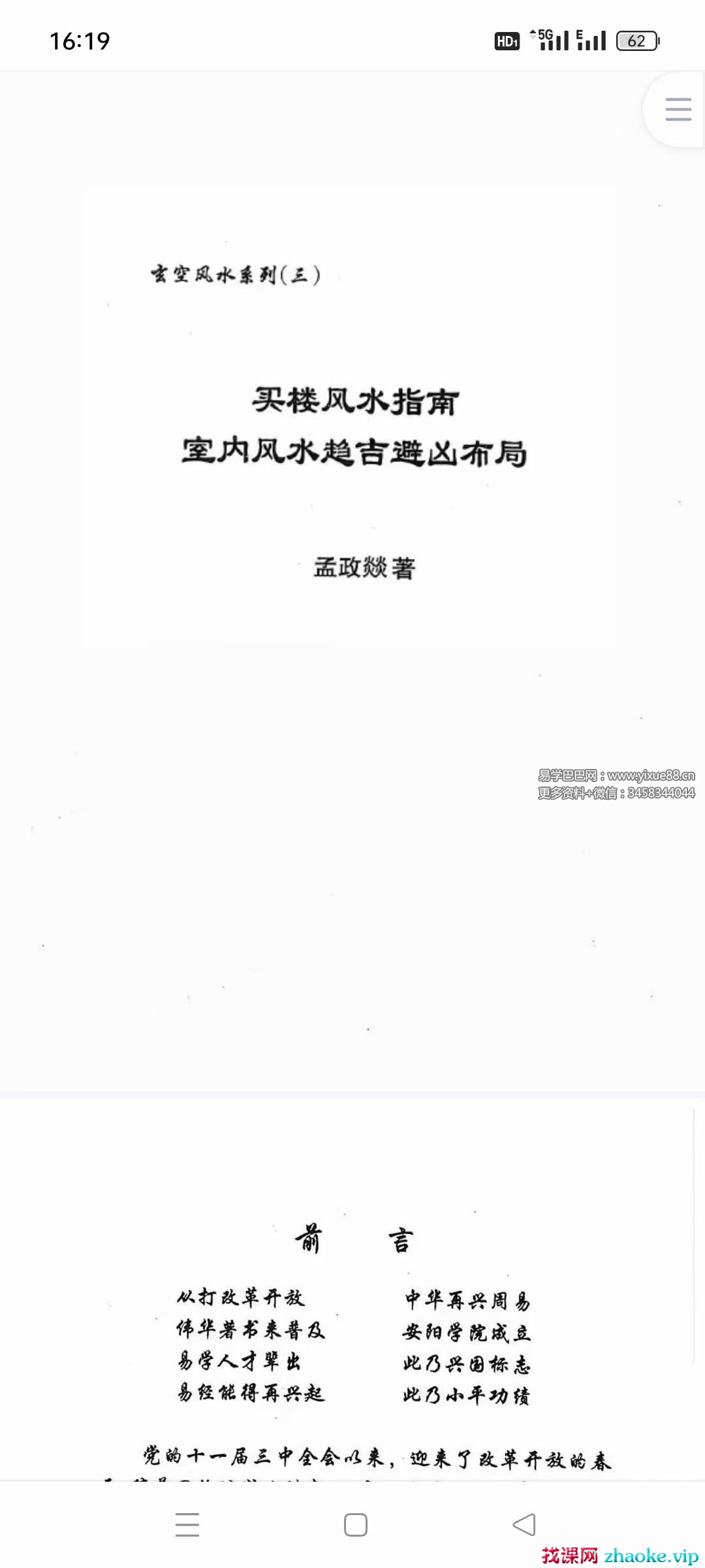 课程编号:Y2510114[福][福]孟政燚-《买楼风水指南、室内水风趋吉避凶》孟政燚著峦头无气理不验风生水财起运来理无气峦头不显风生起水官运来形为体、气为用风生起水富贵来形气