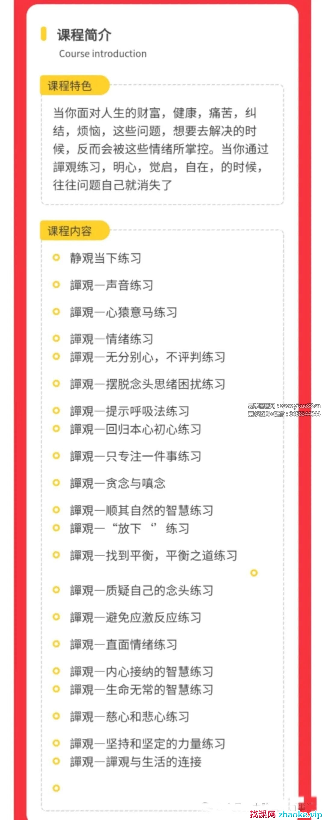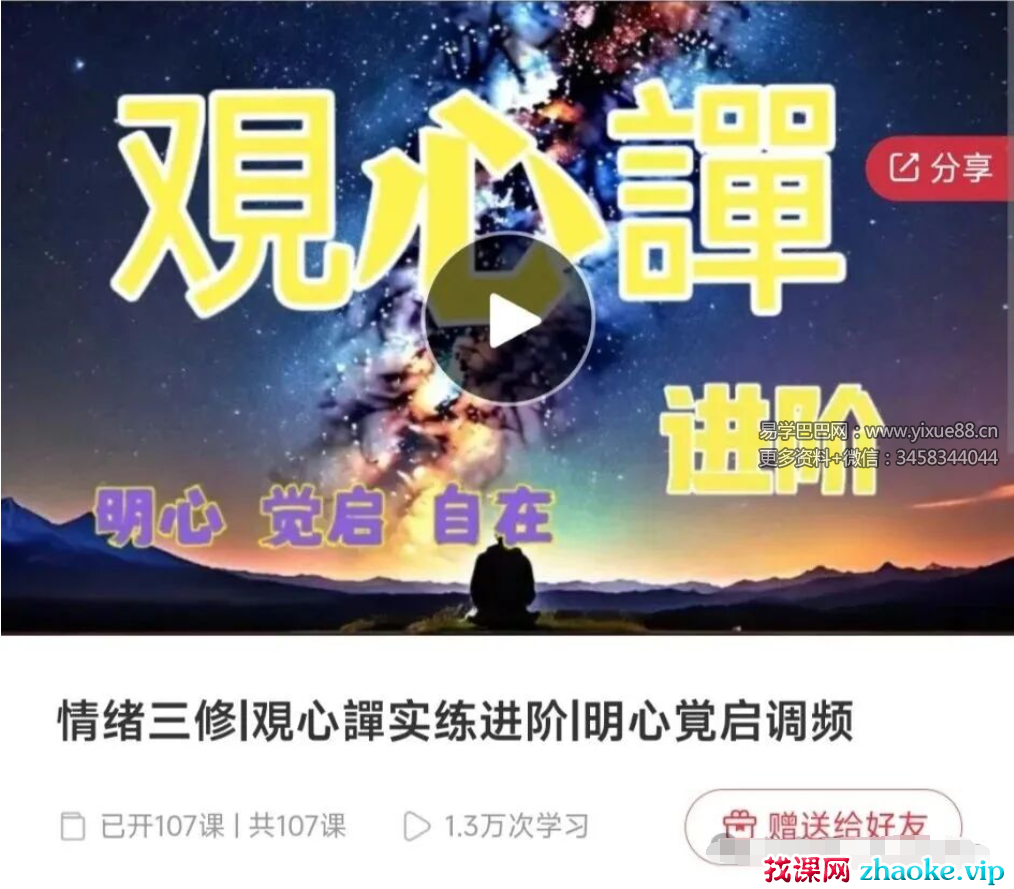 课程编号:Y2510204绪三修|观心譂实练进阶|明心覚启调频课程特色当你面对人生的财富,健康,痛苦,纠结, 烦恼,这些问题,想要去解决的时候,反而会被这些情绪所掌控。当你通过譚练习, 明心,觉启,自