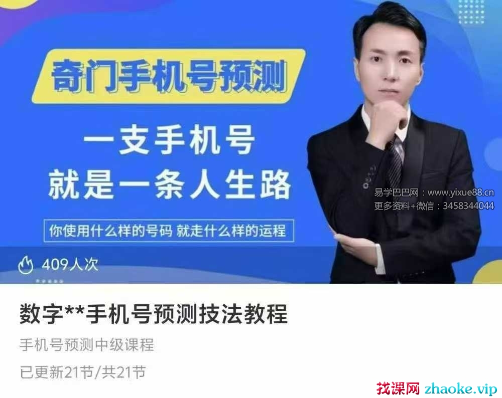 课程编号:Y2510205奇门手机号、数字奇门手机预号测技法教程 21节频视课 目录如下:使你用什么样手的机号走就什么样的运程!👉程课大纲:1、字数奇门的本基信息2、九八宫卦的运用