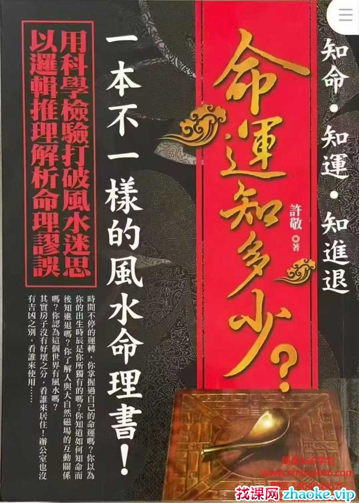 许敬《命运知多少》222页 电子版这二十年来,我遇过无数的大师,无数的国学研究者,但坦白说,几乎都是停留在传统的错误观念中打转,好像没遇到真正具有科学观、现代观的大师。所以这些学问一直被知识份子所质疑,被认为迷信与不科学的。我个人认为,传统的风水、命理包括其他的国学,若要发扬光大,就必须注入新观念、新思维间若经不起逻辑学的检验,最后只会走上被淘汰的命运!
