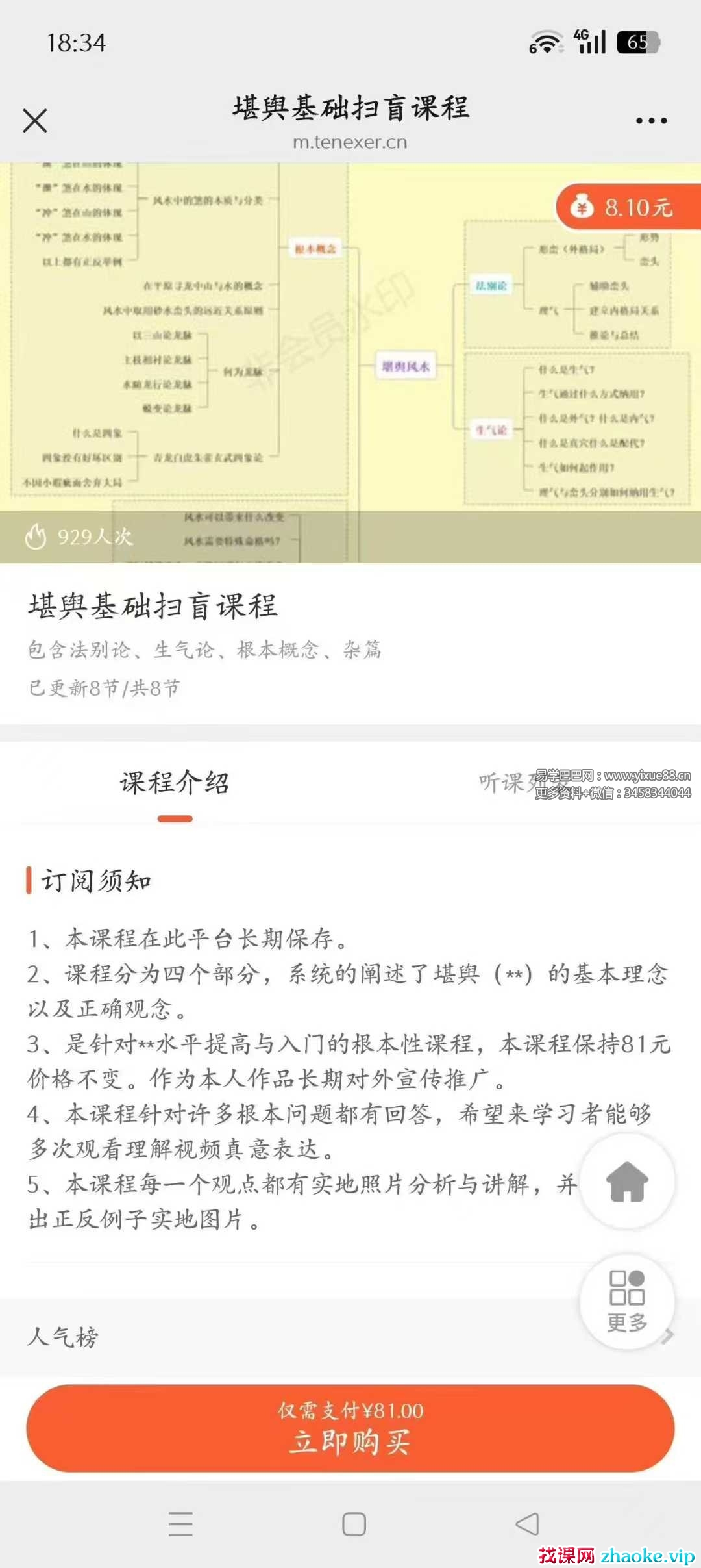 课程中的内容对于整个风水入门理解非常重要,所讲授内容没有遮掩与废话。是为了传播正知正解、驳斥谬论所走出的第一步,故而该课程被我视作作品来打造,并且广而推行。是针对峦头风水的根本性课程。往后对于课程中提到的问题我都不会再讲解与回答,如果想与我共同研究探讨风水文化,该入门课程是必修课程。同时本人以后短时间内不会再出新的付费课程。