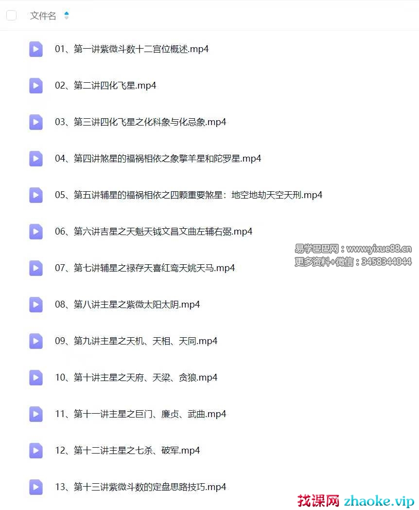 课程编号:Y2510253神霄云麓紫微斗数公益课13集视频课课程目录:01、第一讲紫微斗数十二宫位概述,mp402、第二讲四化飞星.mp403、第三讲四化飞星之化科象与化忌象.mp404、第四讲煞星的