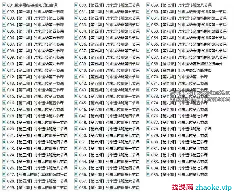 【好课推荐】明棋老师《数字易经·时来运转班》教学视频85集,每个视频1个多小时,具体内容介绍如下: