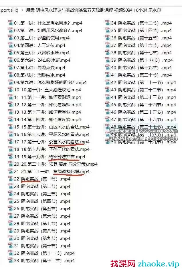 易雲 阴宅风水理论与实战训练营,五天陪跑课程 视频50讲 16小时 高清视频。2025年新课,断法以金锁玉关为主,有独特绝活。