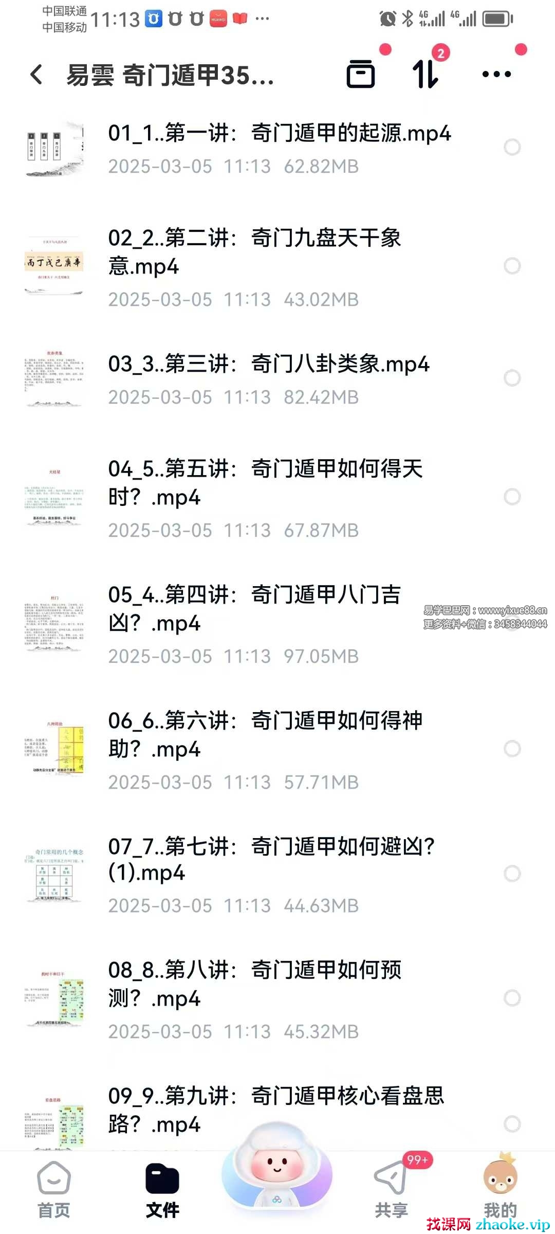 课程编号:Y2512068【易雲】老师 易云奇门遁甲 共35节1.第一讲:奇门遁甲的起源.mp42.第二讲:奇门九盘天干象意.mp43.第三讲:奇门八卦类象.mp45.第五讲:奇门遁甲如何得天时?.m
