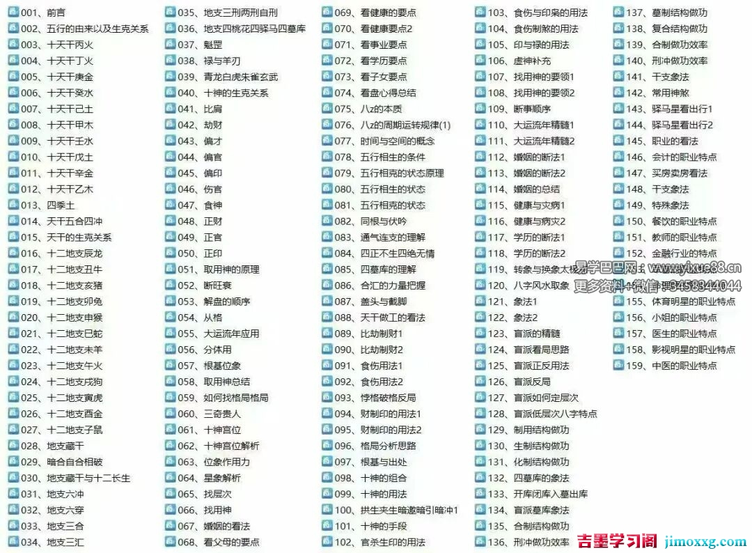 《四柱八字精品课程》159集视频约36小时课时,具体目录如下: