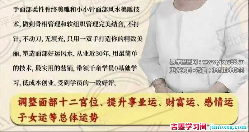 6.小针针灸面部风水美雕技术的营销与推广,让学员学以致用,快速变现工具用最简单的0.16*7的面部美容小针,不需要有中医基础,不找穴位,不找经络,只在特定位置操作,就可以达到畅通面部气血,提升面部,消散结节,淡化或者去除面部的皱纹 斑点 赘肉,填充面部凹陷等,达到全面部提升,年轻化的目的。操作简单,安全,无副作用。零基础小白可以轻松操作,不限年龄不限男女而且男女通调,顾客容易接受,是真正的低成本,高收入的技术。