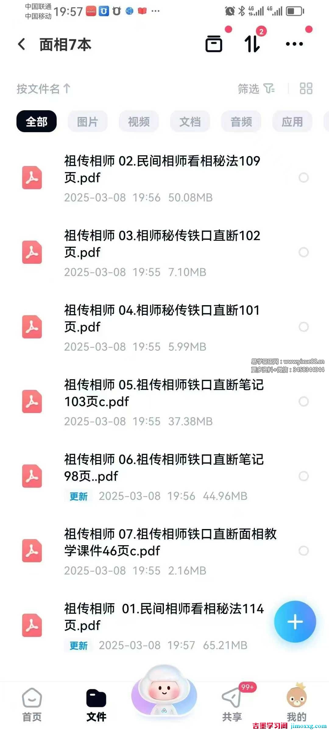 课程编号:Y2512210民间相师看相秘法+祖传相师铁口直断笔记+新编看相书+相师秘传铁口直断等7本,需要私信!是一套关于相术的书籍合集。相术,又称面相学,是一种通过观察人的面部特征来推测其性格、命运