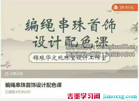 课程编号:Y2512275【玄学配色设计】编绳串珠首饰设计配色课程(从玄学角度)本期讲师:青炎习从全真龙门金山派第二十五代弟子;高级心理咨询师;注册理财师;健康管理师;擅长紫平合参,气场布局;从三个角