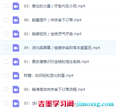 石艾灵】艾灵财富1+7吸金秘法03:意念的力量/ 疗愈内在小孩.mp406: 能量提升 / 向宇宙下订单,mp402: 链接祖先 / 金钱灵气疗愈.mp404:活化脑屏幕/ 链接宇宙财库丰盛富足.mp