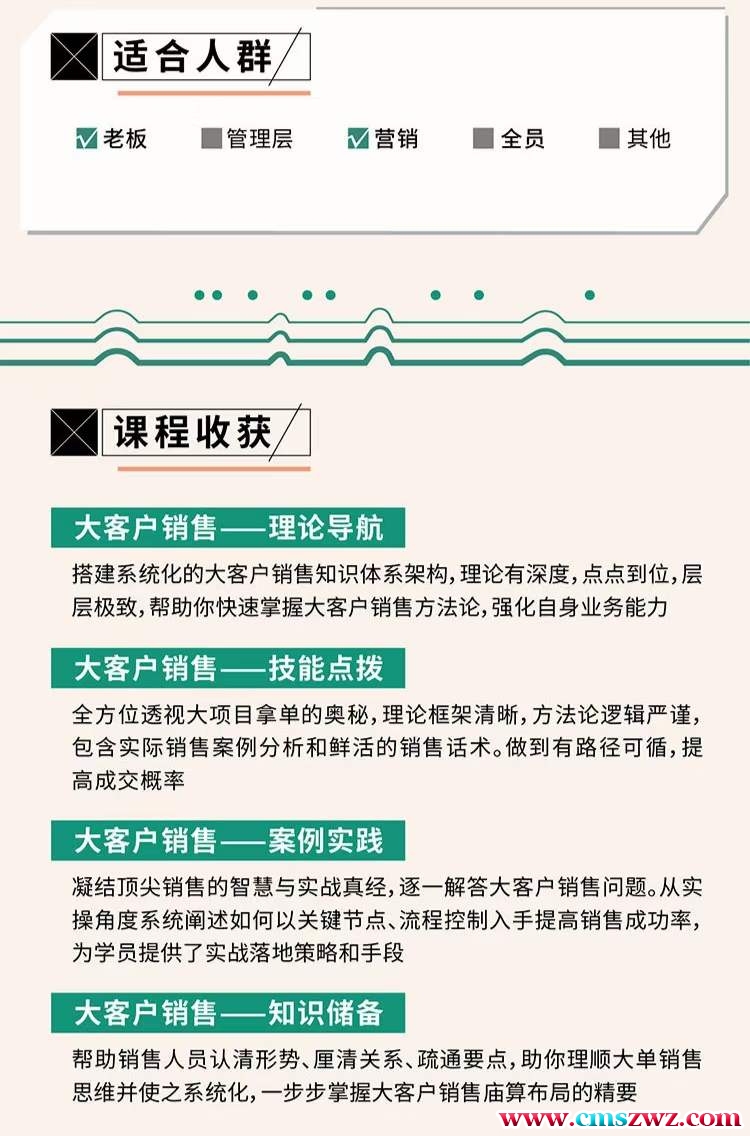 大客户销售业绩提升学这套 本内容基于理论框架模型,通过经典的实战案例,解读详的大单销售过程,摒弃“只教套路,不教思路”的陷阱,普及大单销售常识,训练大客户销售思维,梳理大单销售成功运作的要点、流程,通过深入剖析大单销售的成功运作。
