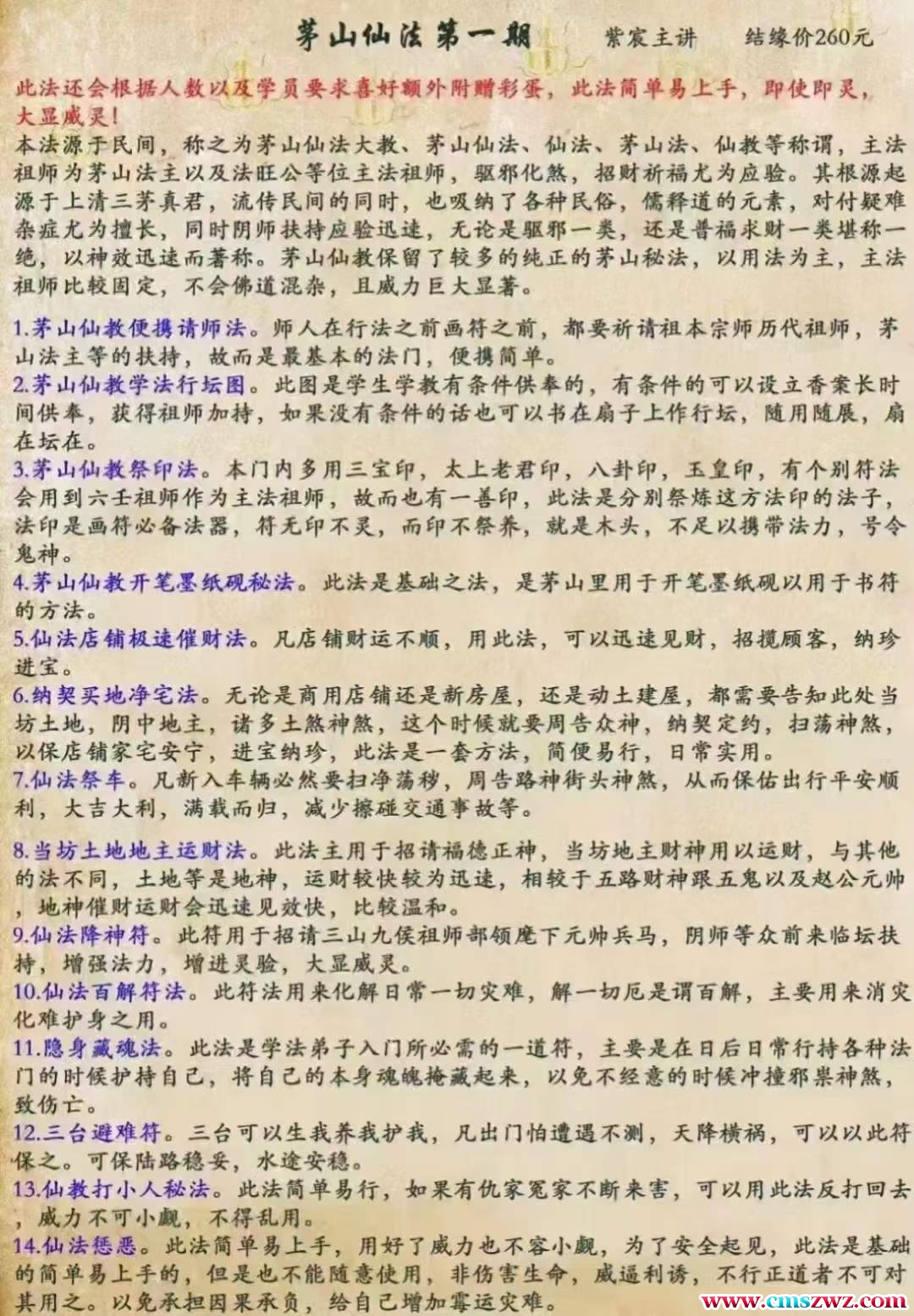 本源法于民间,称之茅为山仙法大教、茅仙山法、仙法、茅山法、仙教称等谓,主法祖为师茅山主法以及法旺等公位主祖法师,驱化邪煞,招财祈福为尤应验。其根源起于源上清三茅真君,流传民间的同时,也吸纳各了种民俗,儒释的道元素,对疑付难杂尤症为擅长,同阴时师扶持应验迅速,无是论驱邪一类,还是普福求财一堪类称一绝,以神迅效速而著称。茅山仙教留保了较多纯的正的茅山秘法,以用法为主,主法祖师较比固定,不佛会道混杂,且威力巨大显著。