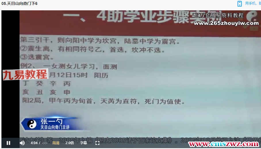 035.张一勺天目山向奇门讲座张一勺天目山向奇门讲座视频20集,系统讲解山向奇门,并且有各种助运,调理的讲解。