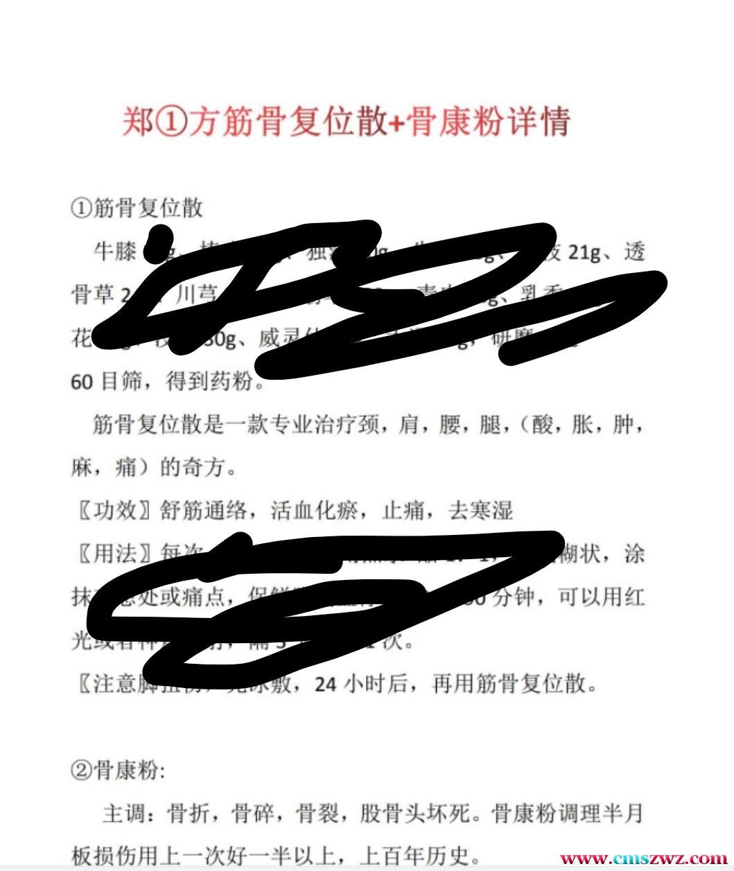郑一方筋骨复位散+骨康散 特效秘方