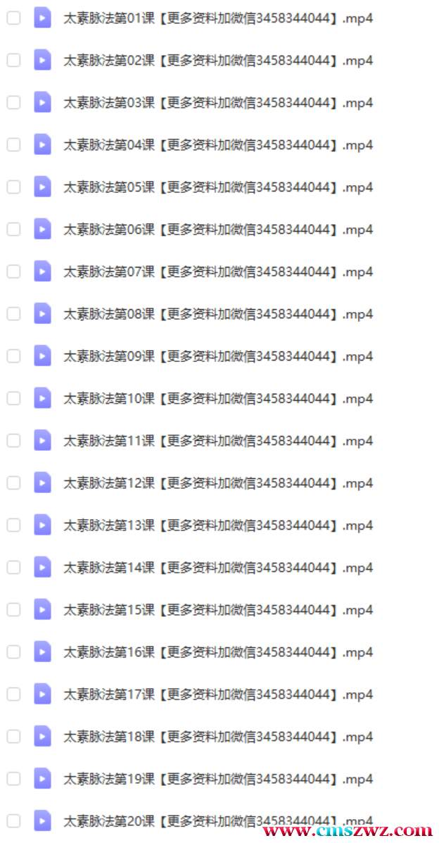 朱引山(罗山道长)太素脉法视频84集。道家无极系列精品课太素脉法是道家秘传的古脉法,在道家天人合一观为理论基础。河图、洛书、阴阳、太极、五行、九宫为理论模型,以吐纳、导引、站桩、静坐、内丹术为体认,建立的具有定位、定形、定性、定量、定时空的脉法诊断。