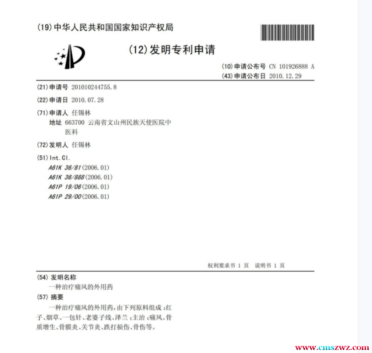一种治疗痛风的外用药