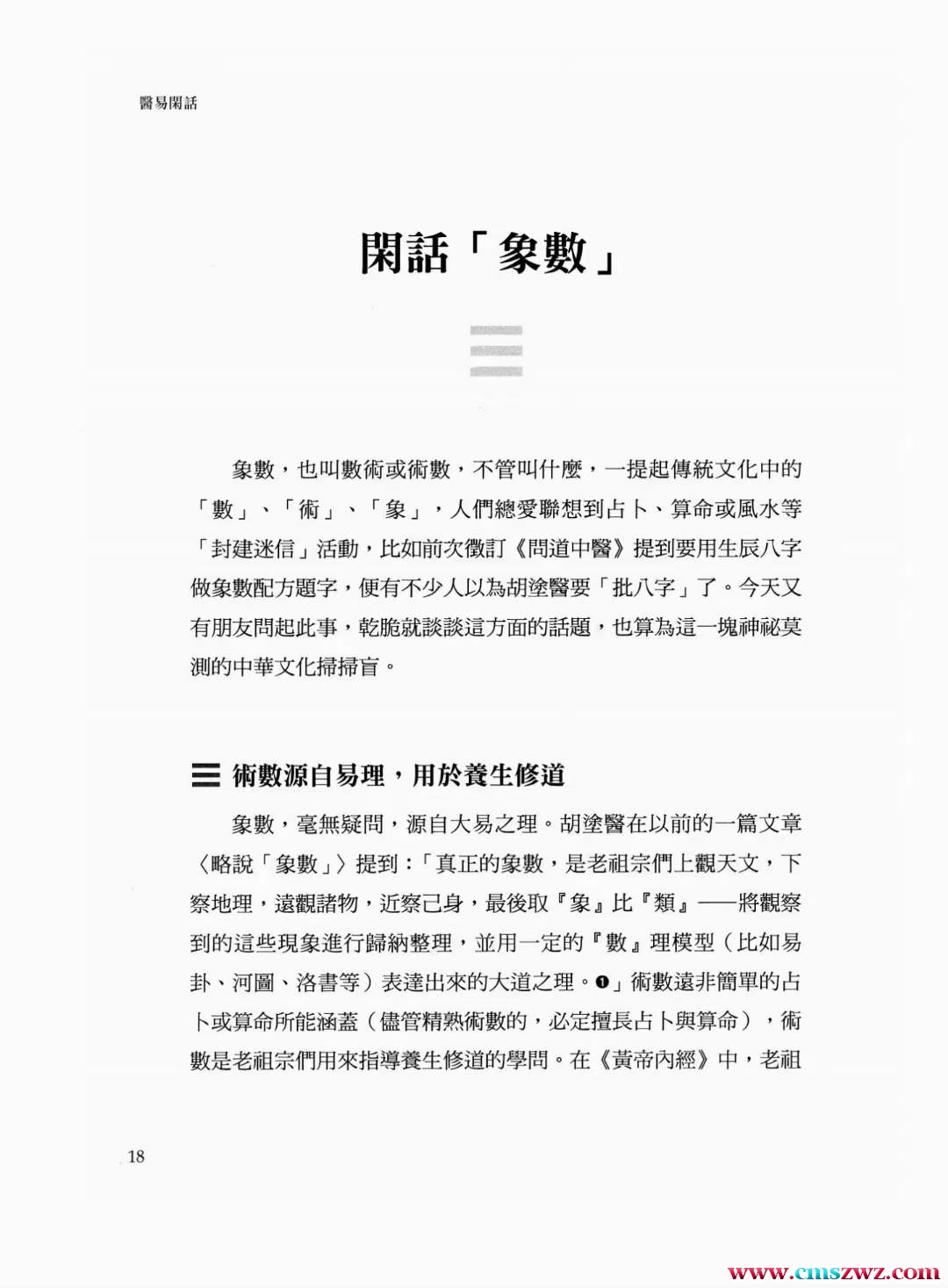 课程编号:Z2210-01?糊涂医【医易闲话】646页 高清作者~糊涂医老师继全球热销300万册《问道中医》后再创经典贯通古今中西首本深入解析古传中医与易学的巨作,中医与象术 八卦信息探微 体质剖析与