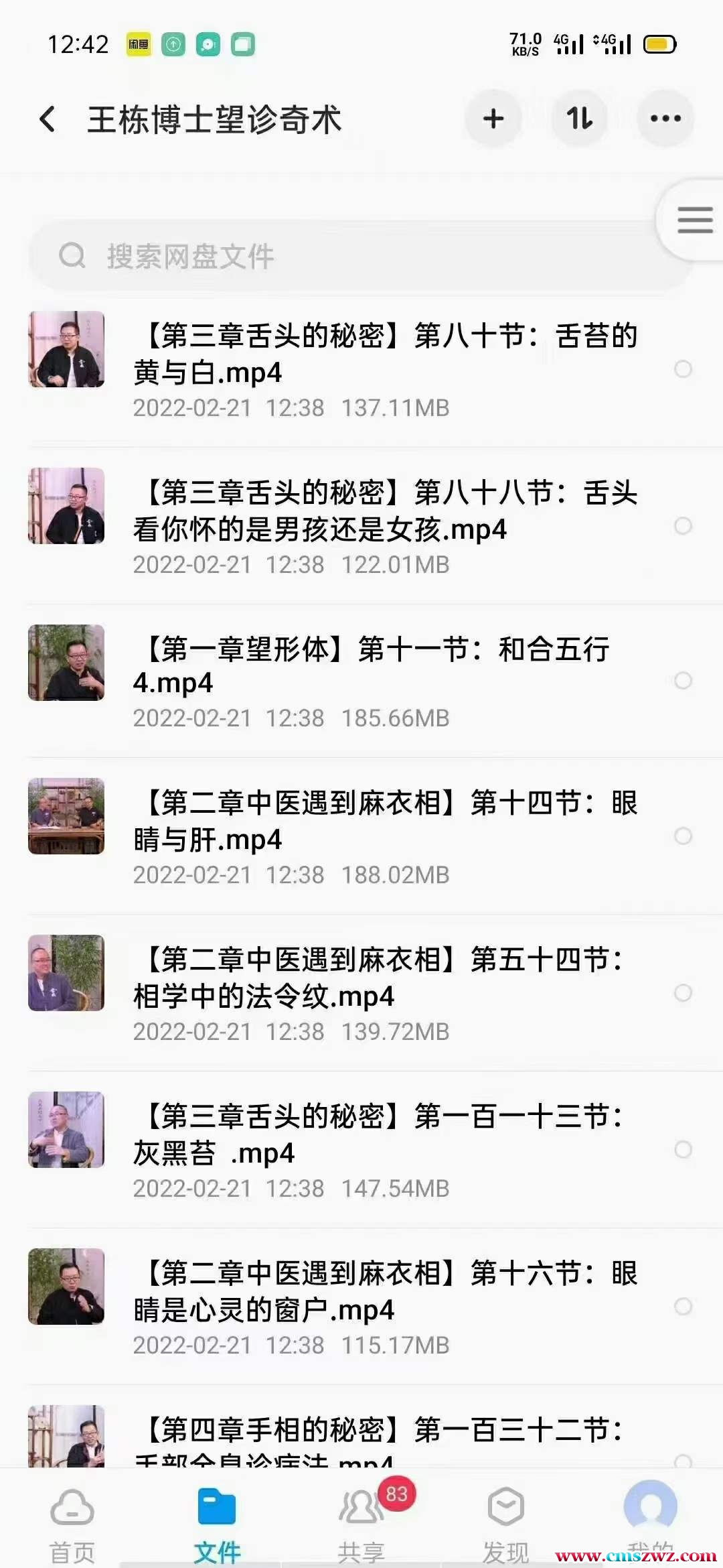 课程编号:D2201-41王栋博士《望诊奇术》~新课重磅推出~票价499春节️ 视频内容大纲 {不加密24G:主课146节+1集介绍课}第一章、望形体第二章、望面相{中医遇到麻衣相}第三章、舌头的秘密