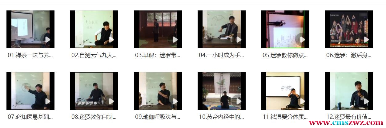课程编号:Z2305-1601.禅茶一味与养生.mp402.自测元气九大指标.mp403.早课:迷罗带你敲经络.mp404.—小时成为手诊高手.mp405.迷罗教你做点穴高手.mp406.迷罗:激活身