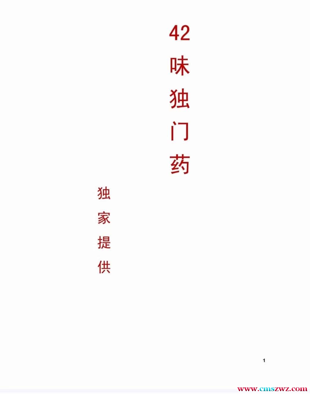 课程编号:Z2312-05【42味门独药】14页独门药就是家传药方、不公开的秘方。独家配制的成药,它往往有特殊的功效,为民人所景仰。则实独药门即是由民间验方逐发步展而来的。逐渐被人