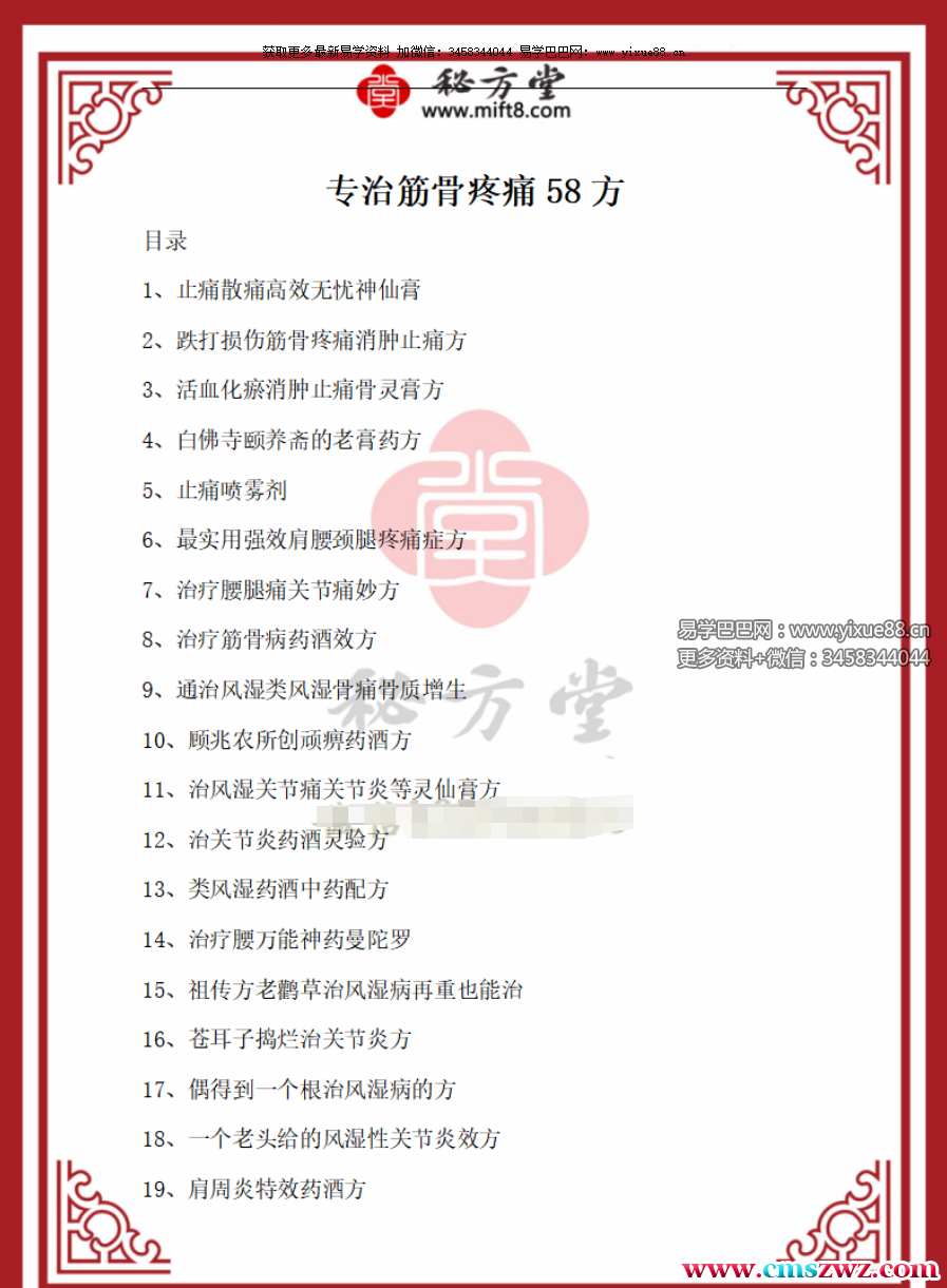 课程编号:Z2402-03止痛散痛高效无忧神仙膏跌打损伤筋骨疼痛消肿止痛方活血化瘀消肿止痛骨灵膏方白佛寺颐养斋的老膏药方止痛喷雾剂最实用强效肩腰颈腿疼痛症方治疗腰腿痛关节痛妙方治疗筋骨病药酒效方通治风
