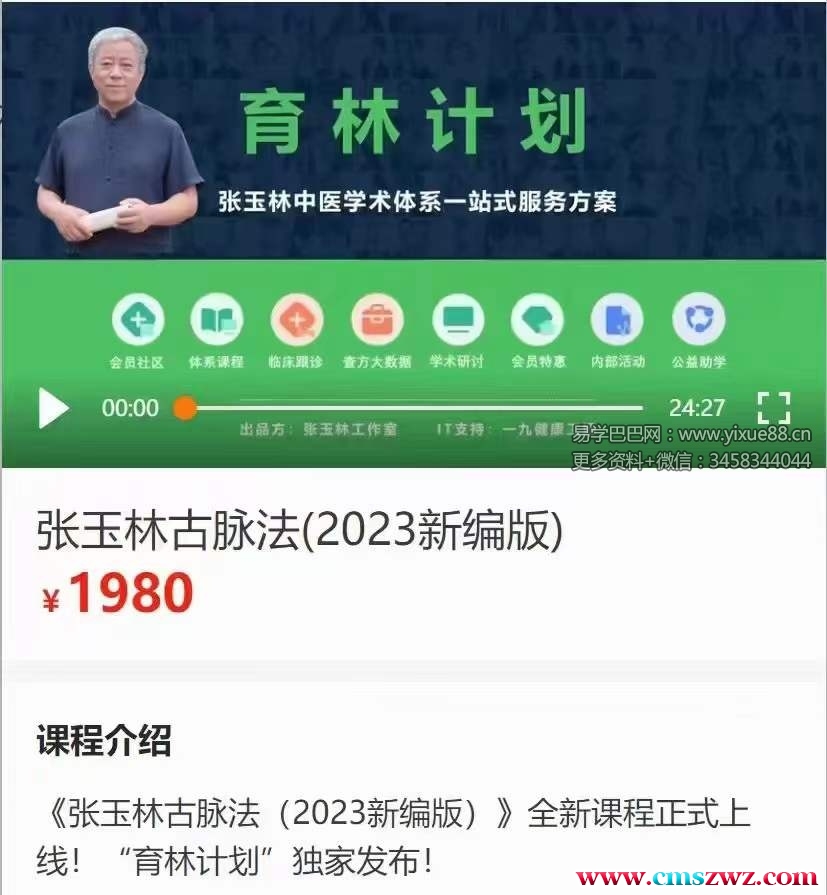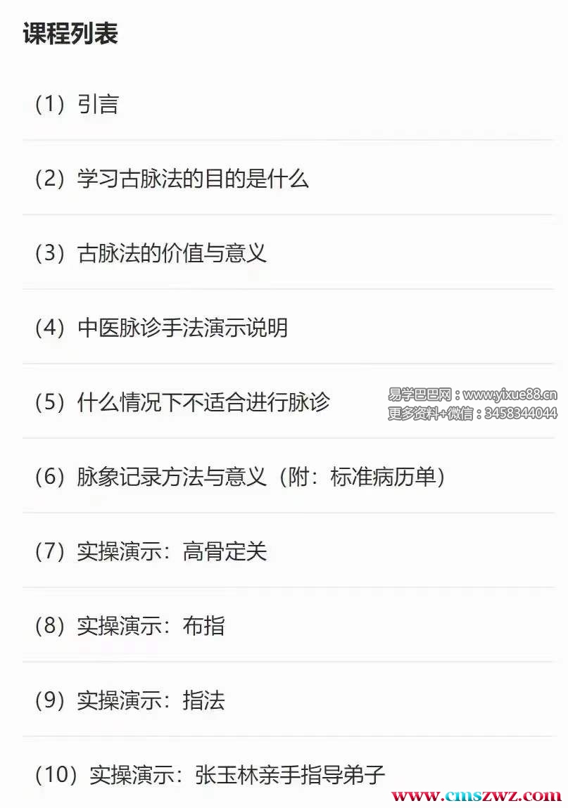 课程编号:Z2403-01张玉古林脉法(2023新编版)全27讲频视课张玉林:临床经验40余年,摸超脉过30万人,对脉于象精有准手的感。熟练掌握经各类典古籍,熟知古今医易化文