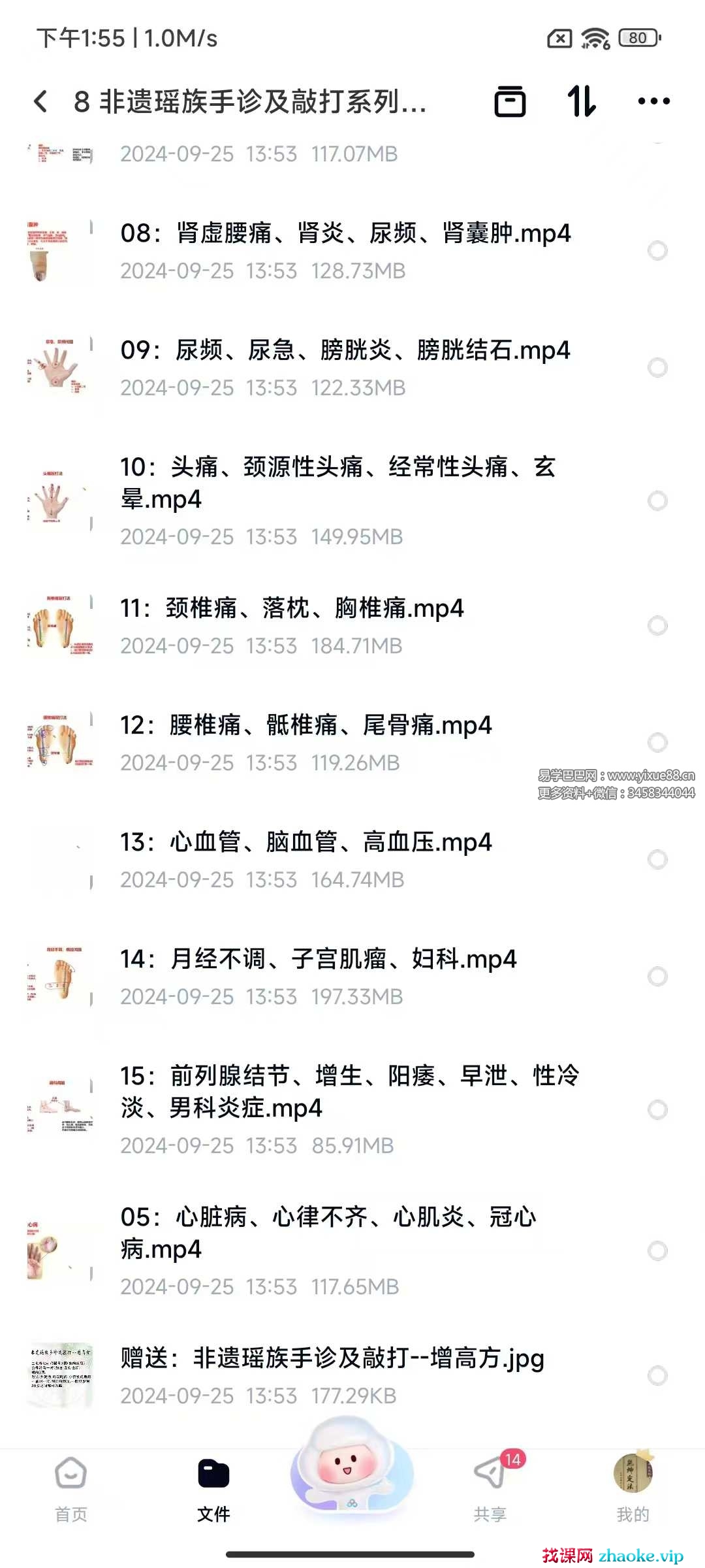 课程编号:Y2412-92非遗瑶族诊手及敲打15集视频(送增高方)赠送:非遗瑶族手诊及敲打–增高方.jpg01:瑶族手诊敲与打、针法灸溯源.02: 敲打法方的示与范注意事项03:肝