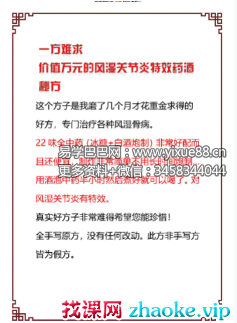 课程编号:Y2504-14《风湿关节炎特效药酒秘方》