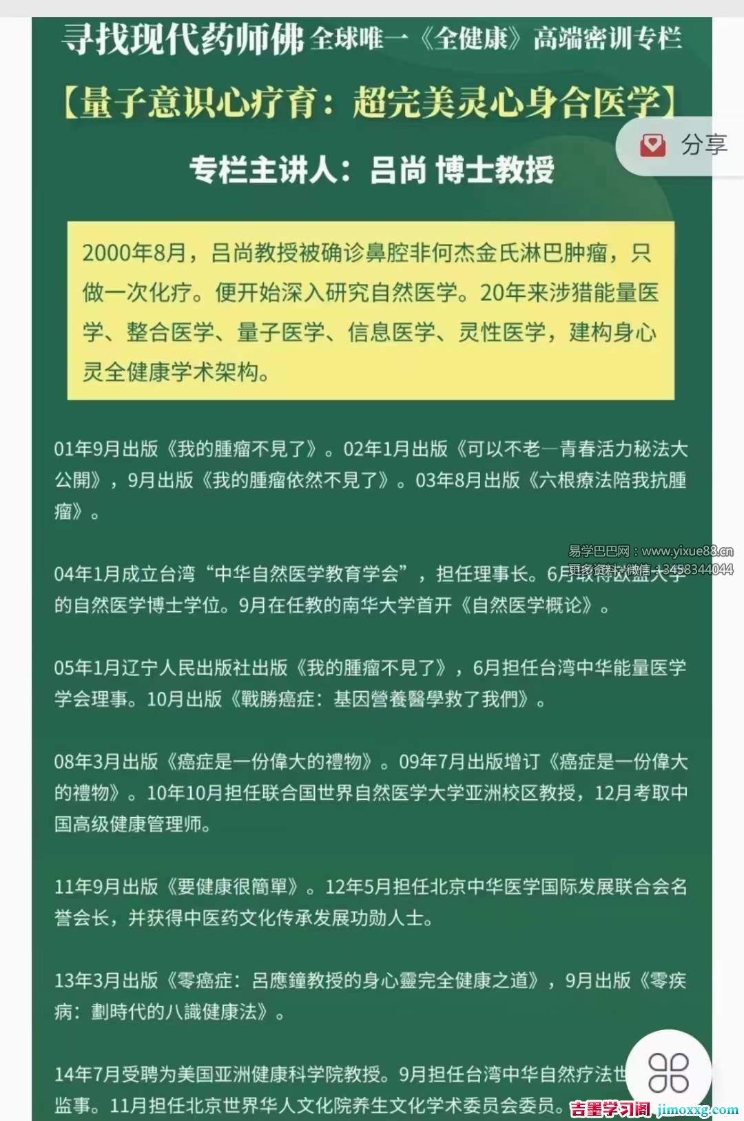 吕尚【寻找现代药师佛】全球唯一《全健康》高端密训专栏7集