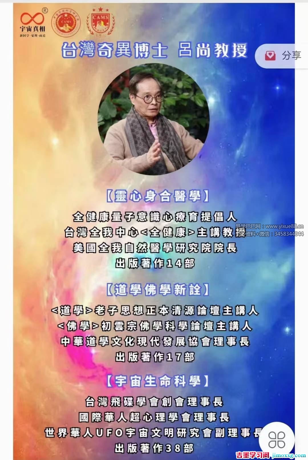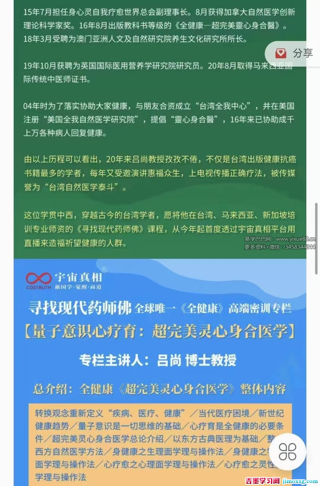课程编号:Y2508040【找寻现代药师佛】全球唯一《全健康》高端密训专栏台湾自然医学泰斗吕尚博士教授,在台湾、马西来亚、新加培坡训专业师资