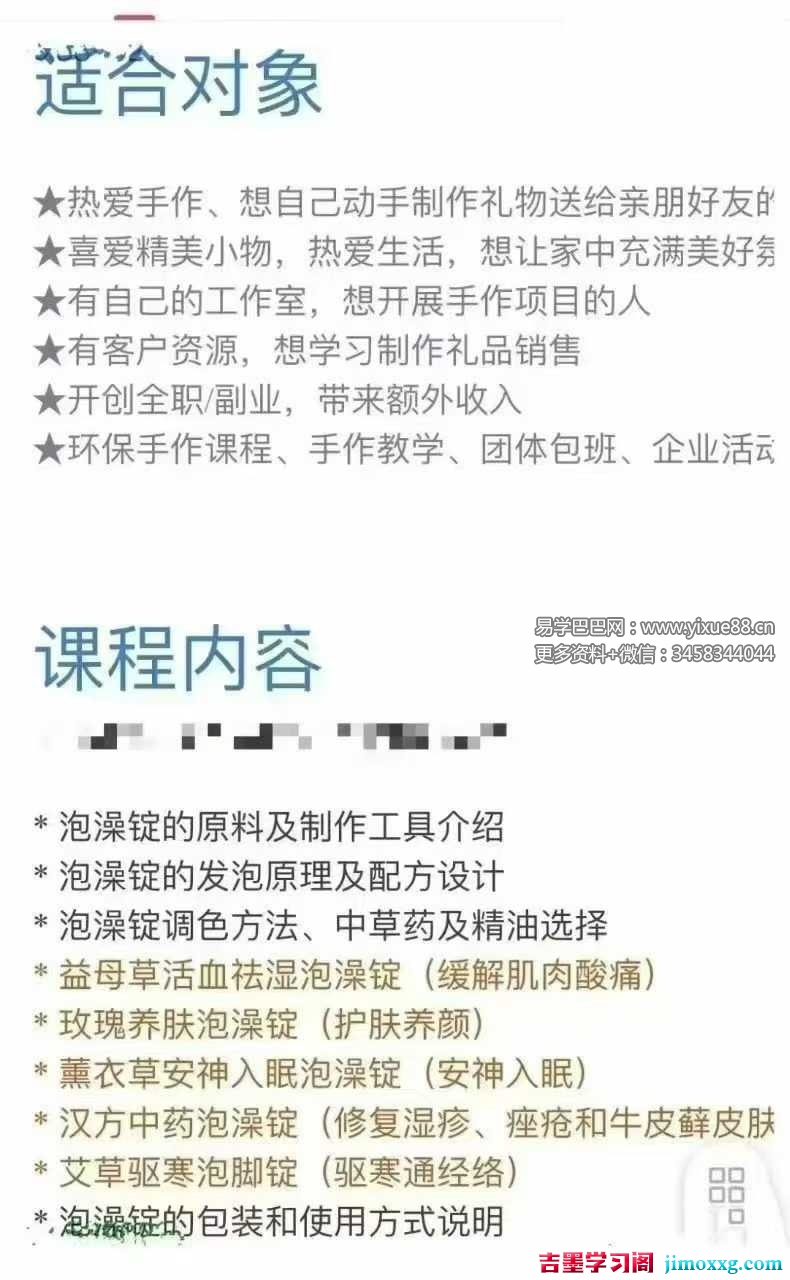 课程编号:Y2509178🇨🇳🇨🇳【中药泡澡锭课】天然草本泡澡锭/泡脚锭课程课程特点*分享原材料和工具的渠道会在视频课程中一直陪伴着你们,解答练习时遇*这套中草药泡澡锭系列课程中除了基本的配方原程后不