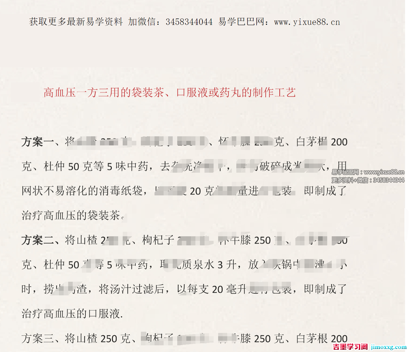 课程编号:Y2510161高血压一方三用的袋装茶方服用方法:袋装茶每天上、下午各一包,滚水冲服,当茶饮用;口服液或药丸每天早、晚各服一次。本方方便、速效、根治、价低,具有舒筋活血、补益肝肾、清心凉血、