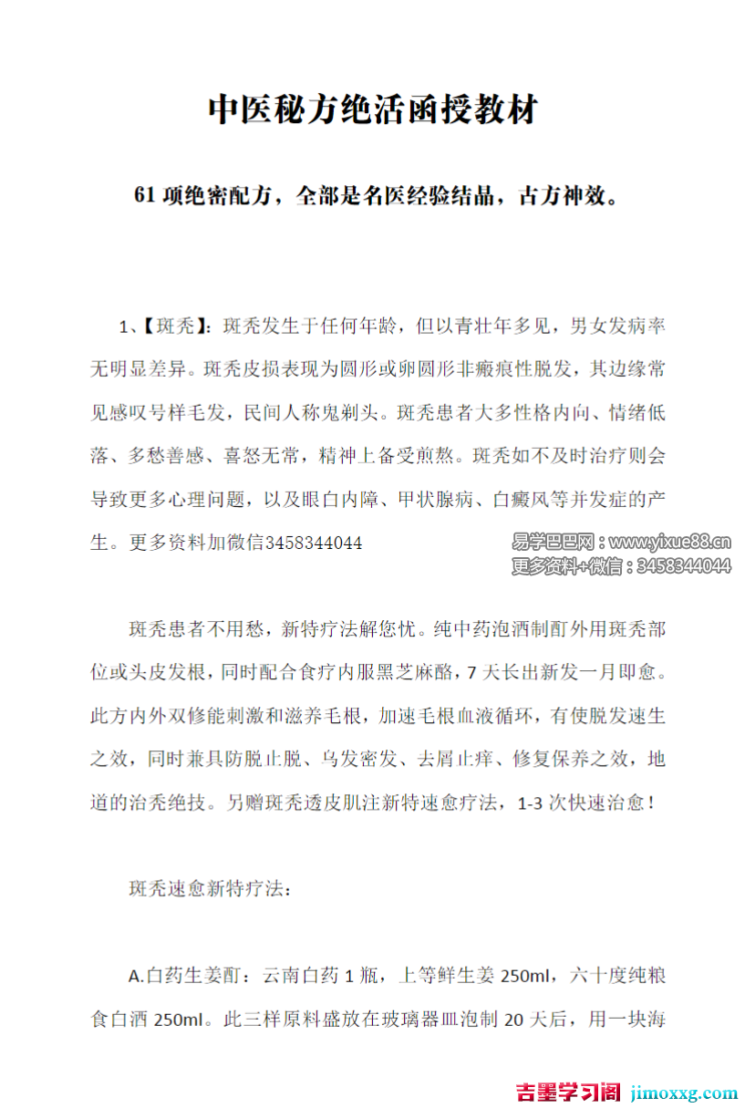 课程编号:Y2512138【秘方】宝芝堂61个真实验方—中医秘方绝活函授教材】~分享高清文档🌸【共计61项绝密配方,全部是名医经验结晶,古方神效】1、斑秃绝密2、脱发绝密3、头癣绝密4、顽固性头疼5、